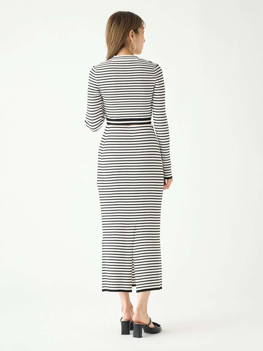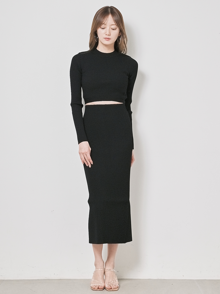 クロップド丈に仕立てトレンド感を押さえたリブニットプルオーバー。裾部分のみ横編みにすることでシンプルな中にもさり気なくアクセントをプラスしています。ボディラインにフィットするコンパクトなシルエットが女性らしさを感じさせる秘訣。パンツともスカートとも合わせやすく、レイヤードのインナーとしても活用できるので、スタイリングの幅はぐっと広がります。同素材でスカート(SWNS231183)もご用意があるのでセットアップでも着用可能です。