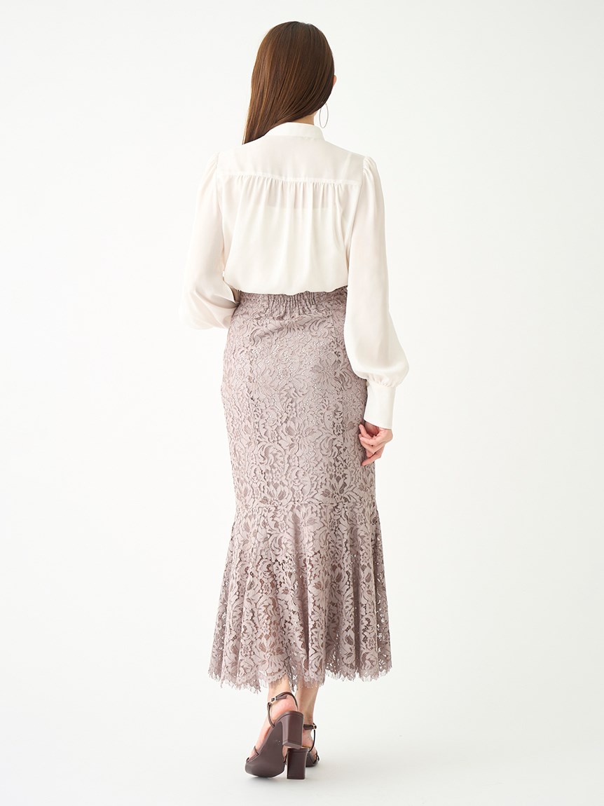 クラシカルなボウタイ&パールボタンがポイントになった、清楚な印象を与えるブラウス。品の良い仕上がりでデイリーからオフィスシーンまで幅広く合わせやすく、着まわし力の高い万能な1着です。袖の内側にはスリットを入れさり気ない肌見せを演出。バリエロングスカート(SWFS231168)やレーススカート(SWFS231203)とカラーを合わせてセットアップのようにコーディネートするのもおすすめです。
