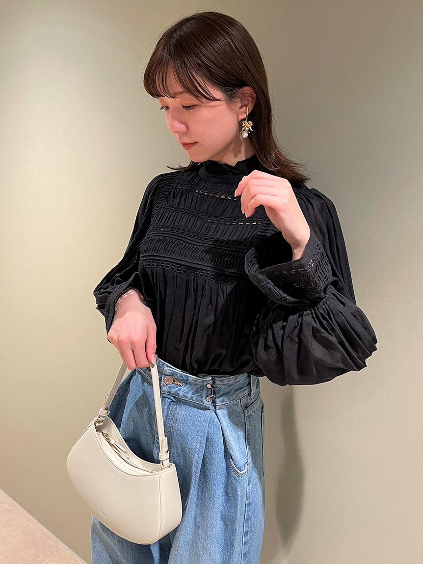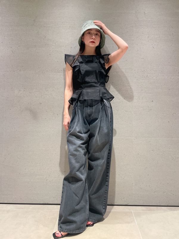 程よい厚みのあるデニム素材で立体的なシルエットを演出しました。クールなブラック、今年らしいライトブルーの2色展開でお届けします。