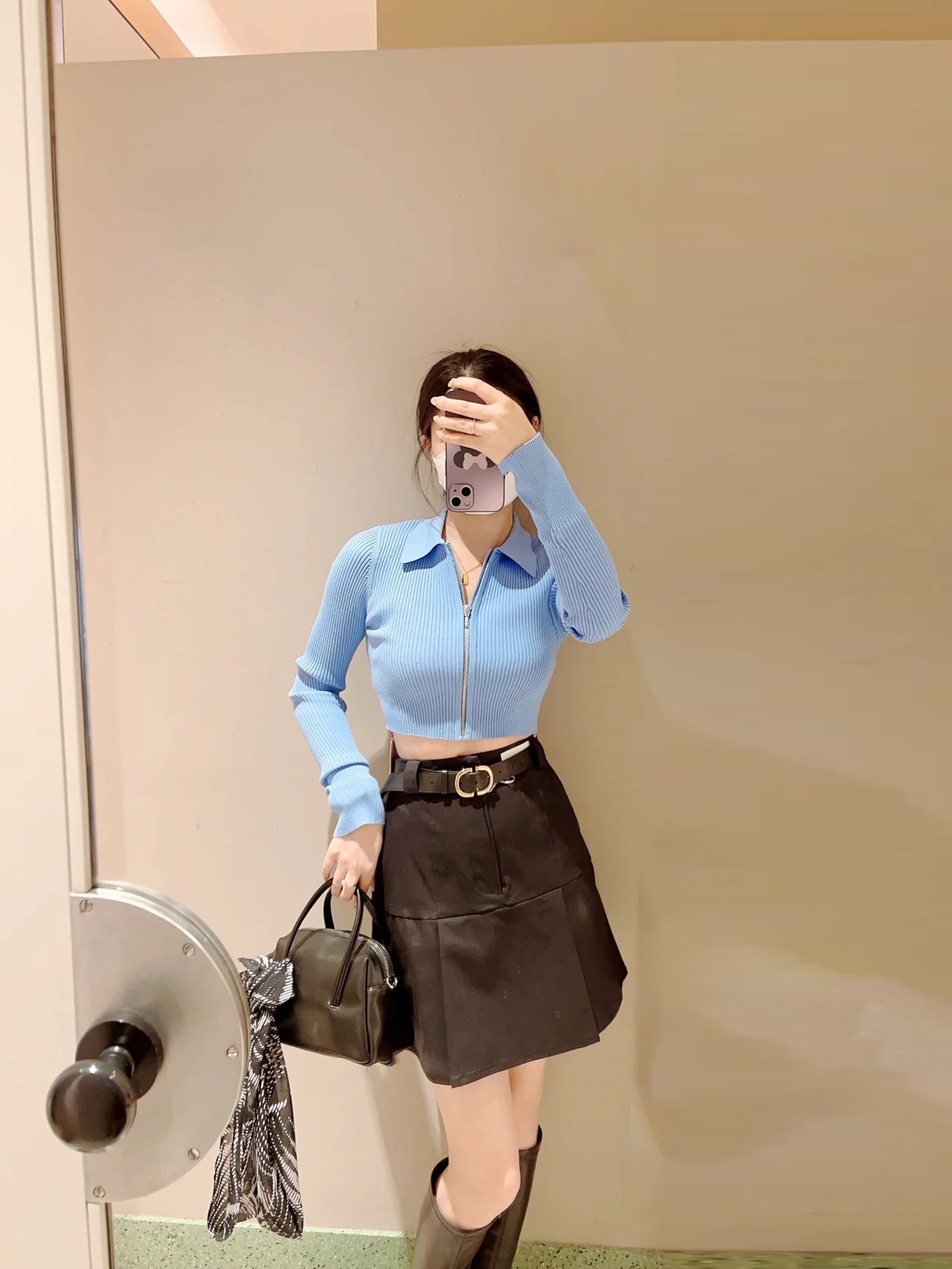 ベルトセットバックプリーツミニスカート