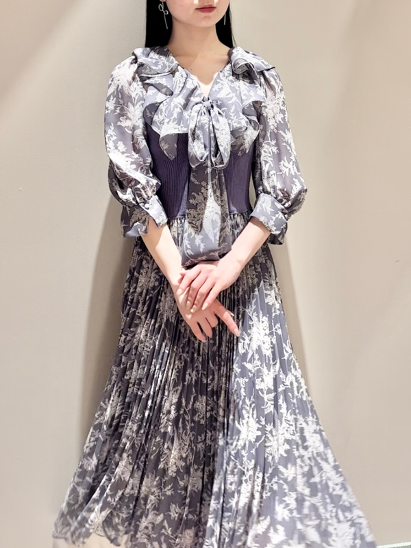 【他にはないドッキングデザインが目を引くプリントワンピース】
