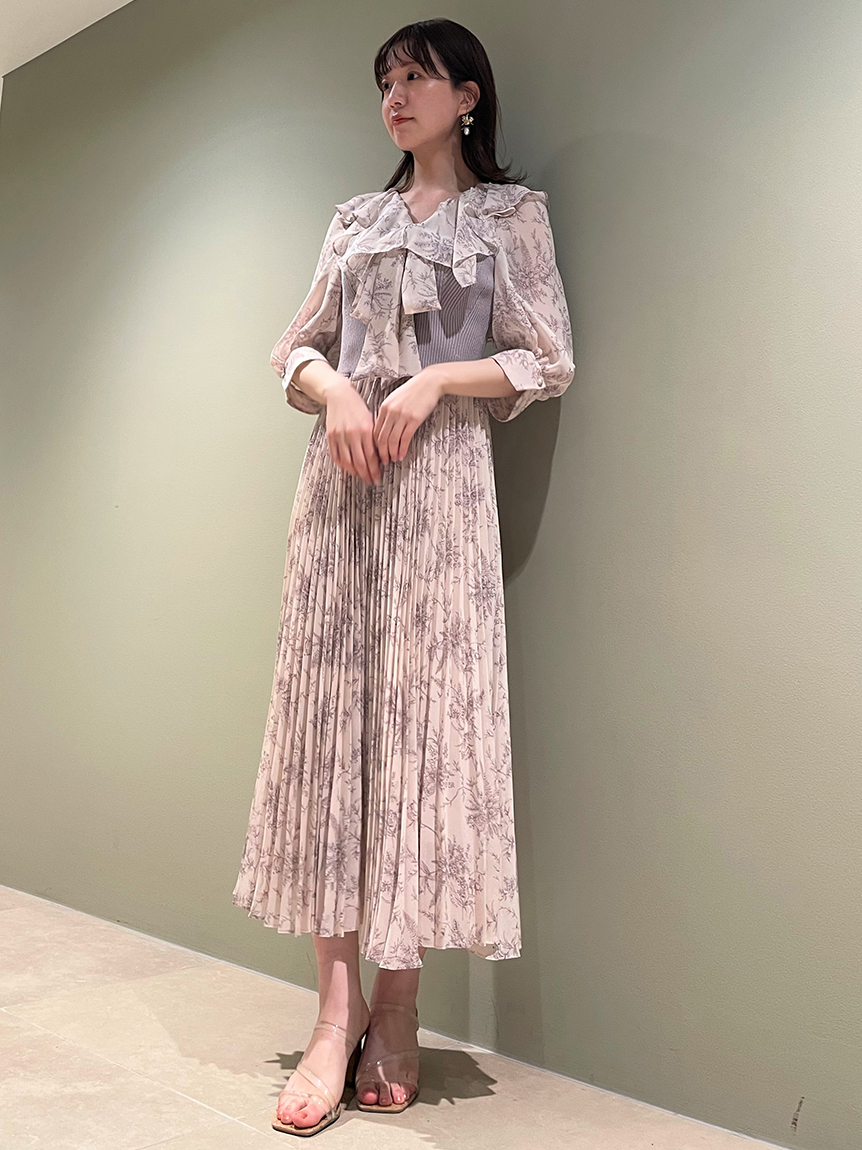ベアトップをレイヤードしているかのような、今までありそうで無かったドッキングワンピース。ベアやフレアカラーでトレンド感満載なデザインの上に、胸まで入ったリブが上身頃をスッキリと見せ、一気にスタイルUPを叶えてくれます。柄は「SNIDEL」オリジナルの華やかなプリントで、綺麗な配色も魅力。インナーはドッキングしているので着用も簡単にでき、着心地の良さも配慮しています。