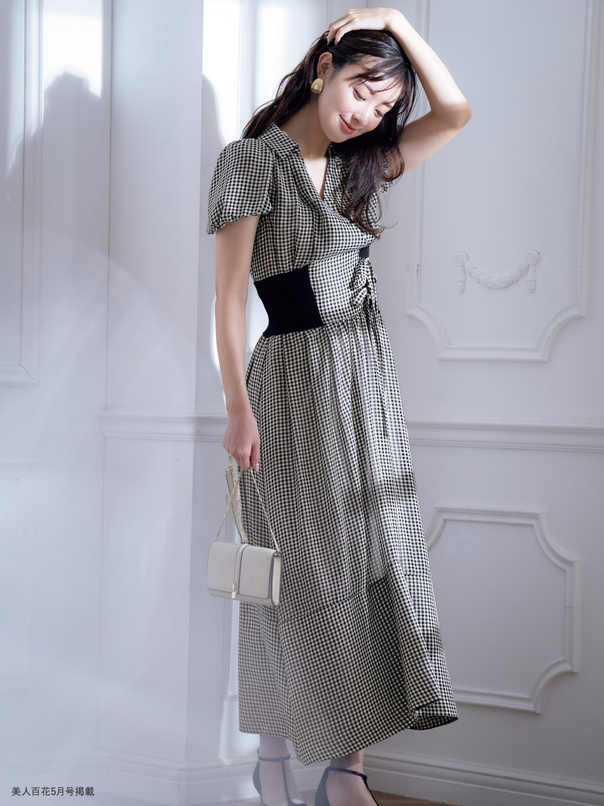 【異素材切り替えでスタイルアップへと導く定番のウエストリブワンピース】