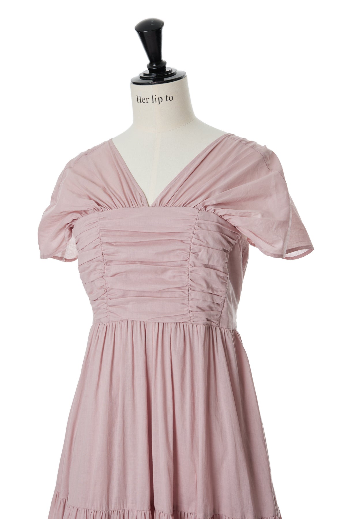 胸の切り替え位置から広がる、デザイン性のあるたっぷりとギャザーを使った袖は気になる二の腕周りをカバーしてくれるのも嬉しいポイント。