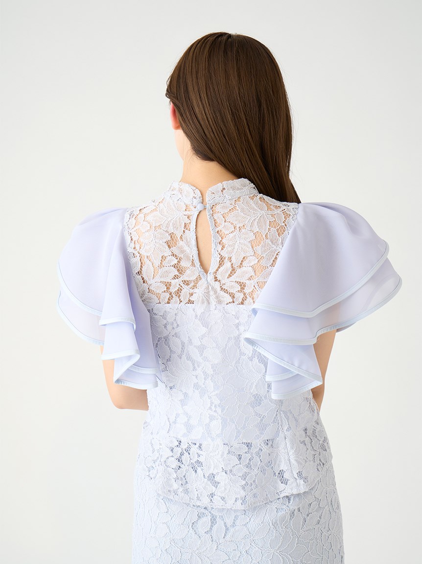 シアーフリルスリーブレースブラウス