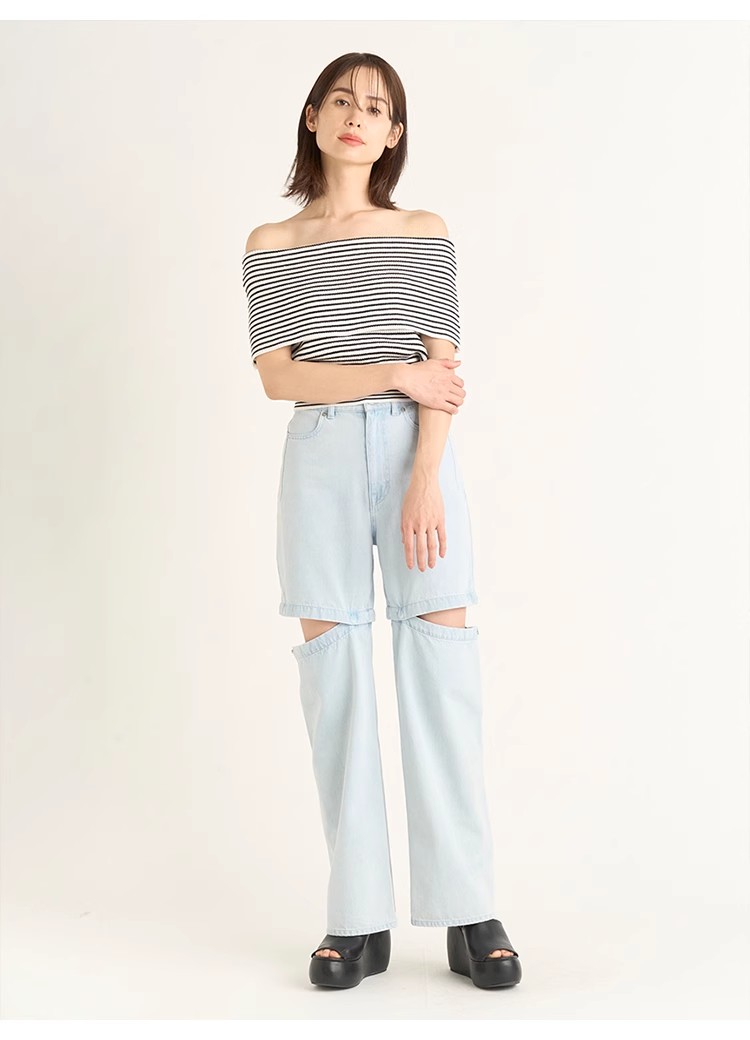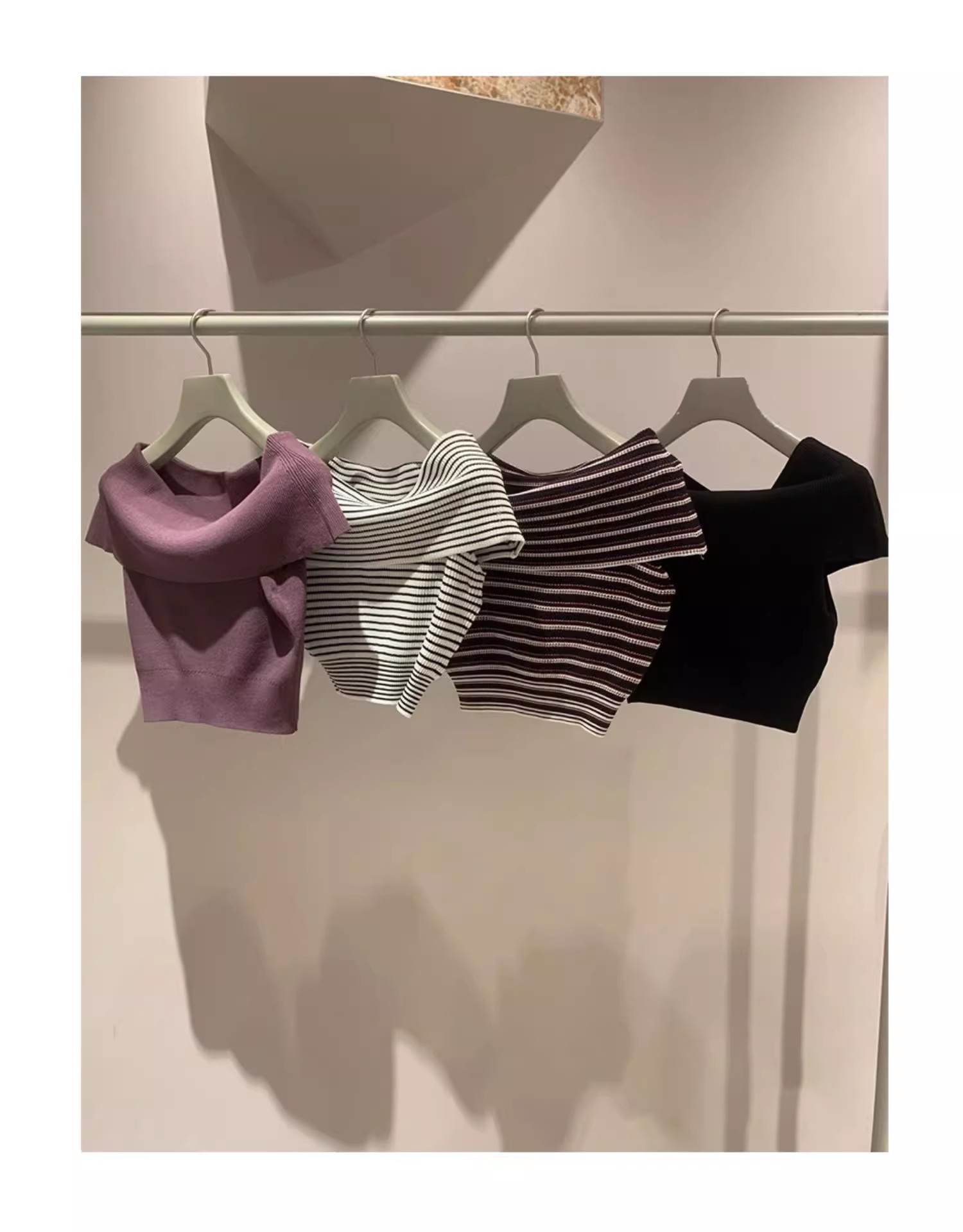 【女性らしい肌見せを叶えるオフショルデザインのニットプルオーバー】