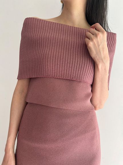 ヘルシーな肌見せで女性らしさを引き立てるオフショルニットトップス。トレンドのオフショルは幅広の折り返しでモード感を演出しました。ショート丈なのでアウトスタイルで着用するのがおすすめ。どんなシルエットのボトムとも合わせやすく、同素材を使用したタイトスカート(SWNS234214)とのセットアップも可能です。