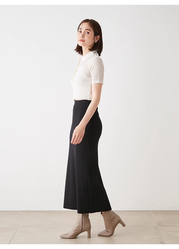 【レディライクなシルエットでスタイルアップへと導くニットスカート】
