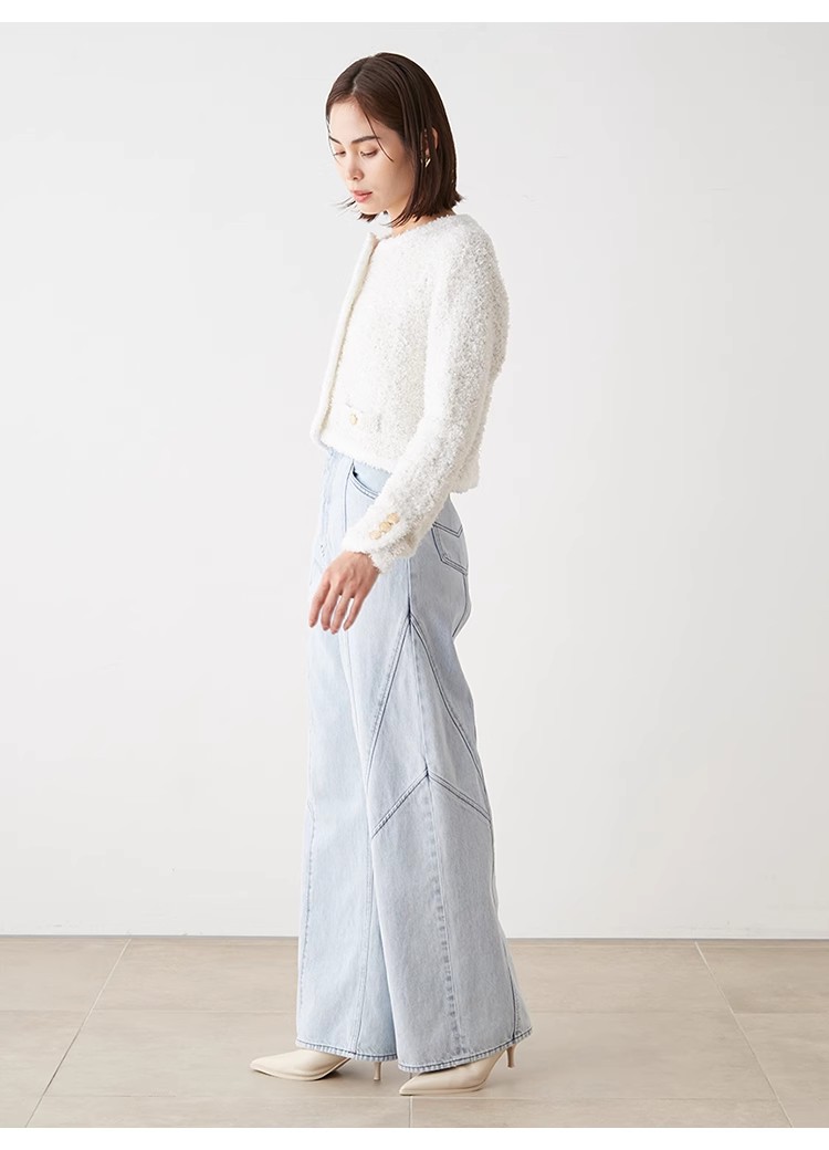 ふわふわとした質感のラメ入りニットを使用しました。オフホワイト、ブラック、グレーベージュのベーシックなカラー展開でお届けします。