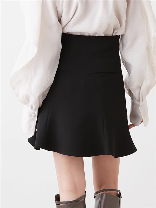 SNIDELの定番アイテムのひとつ・フレアヘムスカショ。パネルを組み合わせたような繊細なフレア感が、ミニ丈をシックに魅せます。すっきりとしたハイウエストが体型カバーもアシスト。印象的でありながらもディテールが少ないシンプルデザインなので、華やぎブラウスやフェミニンなニットなどを合わせてもしっくり。デートや食事会など、様々なシーンで楽しめます。ポケット付きです。