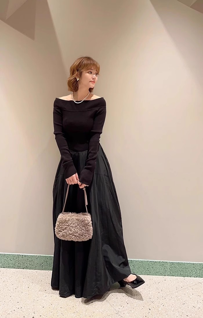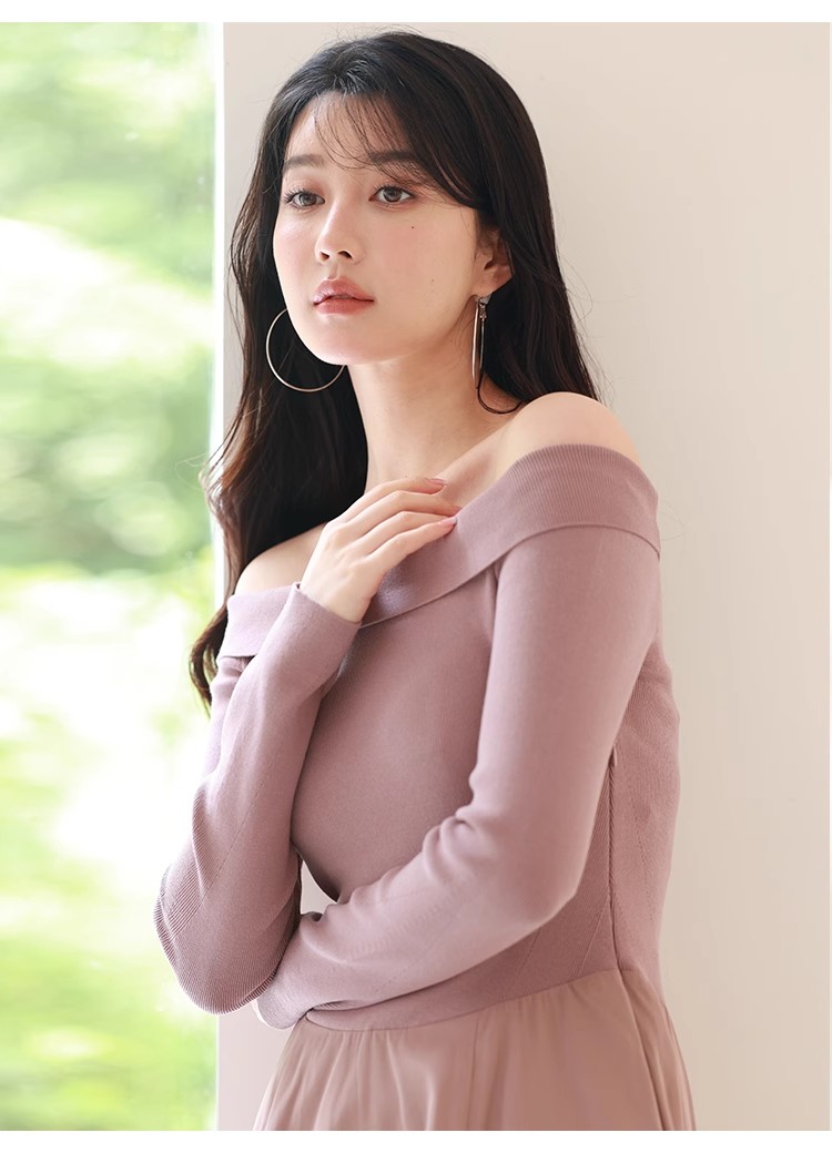 ニットと布帛を組み合わせたドッキングデザインのワンピース。ボリュームが出過ぎないコクーンシルエットなので、着やすいうえにトレンド感のあるスタイリングが完成します。トップス部分は女性らしいオフショルデザインでこなれ感をプラス。メリハリの効いたバランスの良いシルエットでスタイルアップ効果も抜群です。