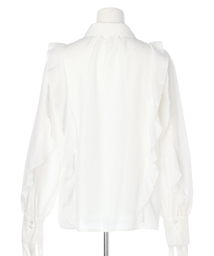 波打つフリルが甘さをプラスするシャツ襟ブラウス。