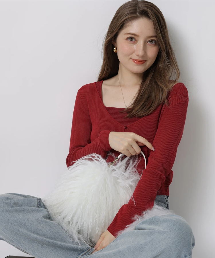 【サイズ】[インナー]着丈:51cm 肩幅:28cm 身幅:34cm[カーディガン]着丈:42.5cm 肩幅:33cm 身幅:37cm 袖丈:57cm