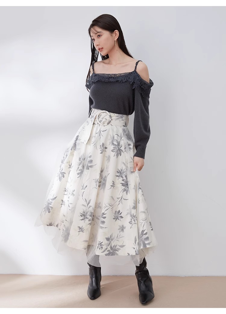 太幅のレーストリミングがポイントになった、華やかな雰囲気のニットプルオーバー。抜け感のあるシルエットがスタイリングにこなれた雰囲気をもたらす秘訣。ゆるっとしたカジュアルなシルエットながら、ヘルシーな肌見せで女性らしく仕上げています。