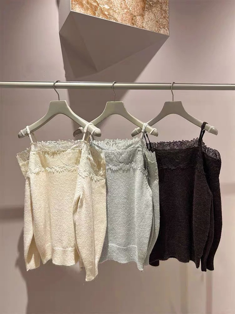 柔らかな風合いのニットに繊細なレースを組み合わせました。ベーシックで合わせやすいアイボリーとダークグレー、女性らしい淡い色味のミントの3色展開でお届けします。