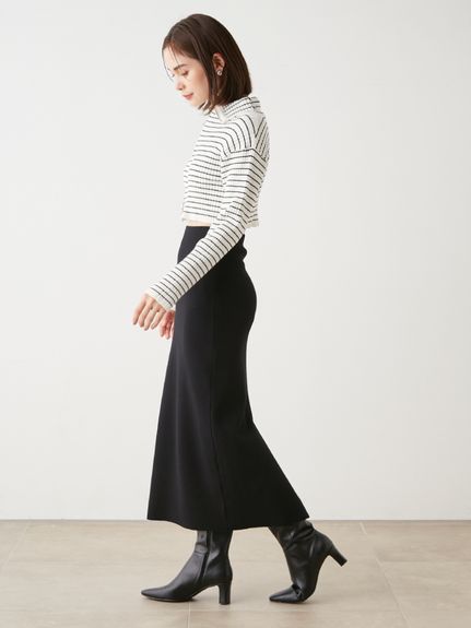伸縮性のある程よい肉感のリブニットを使用しました。ベーシックカラーのオフホワイトとブラックに、レディムード高まるラベンダー、大人カジュアルなボーダーの4色をご用意。