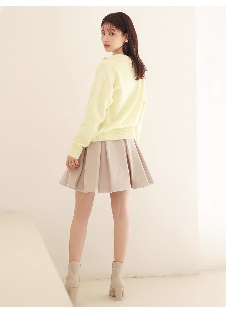 毛吹き感のある温もりたっぷりのニット素材を使用。ベーシックカラーのグレーとベージュ、差し色にぴったりなイエロー、ライトピンクの4色をご用意しました。