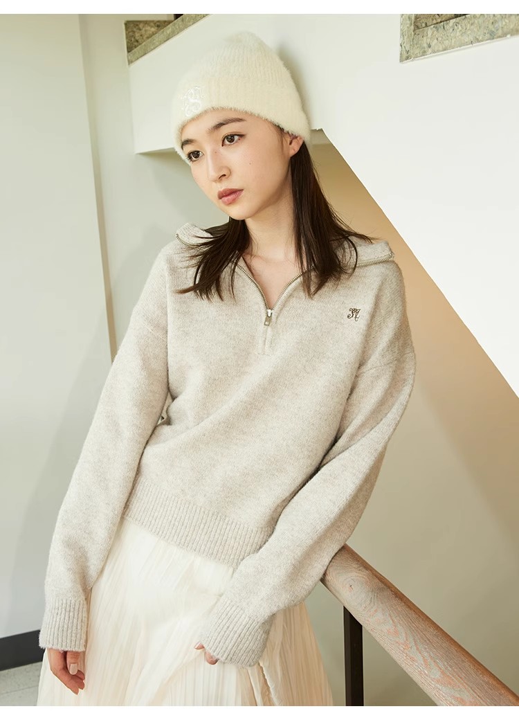 【ハーフジップでトレンドムードを添えたニットプルオーバー】