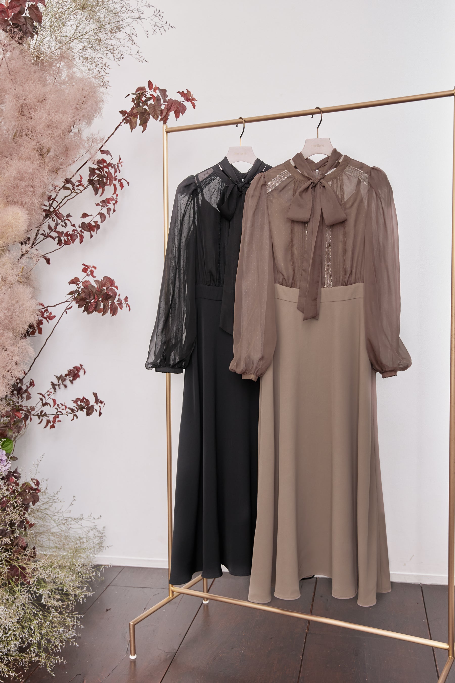 クラシカルでレディな着こなしが完成するドッキングドレス。