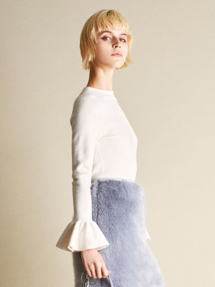 一枚でも、上からビスチェなどをレイヤードしても絵になるよう、袖口は今季らしいフレアデザインに仕上げました。