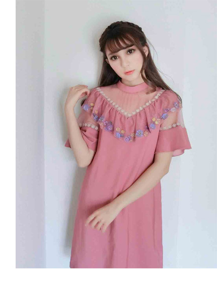 後ろでリボンに結べる襟やフレアスリーブがガーリーな印象。