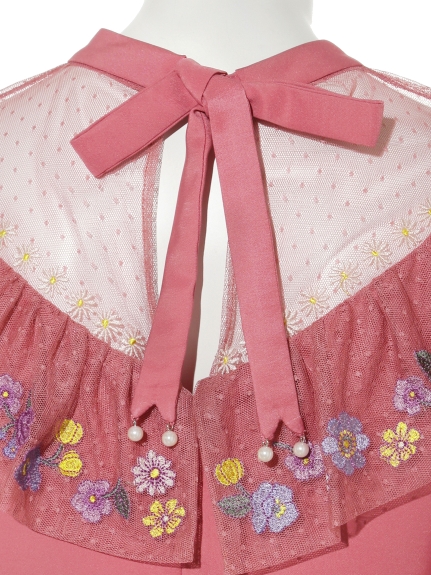 肌の透け感を楽しめるチュールにフラワー刺繍をたっぷりと詰めこんで、レトロロマンティックに着こなして。